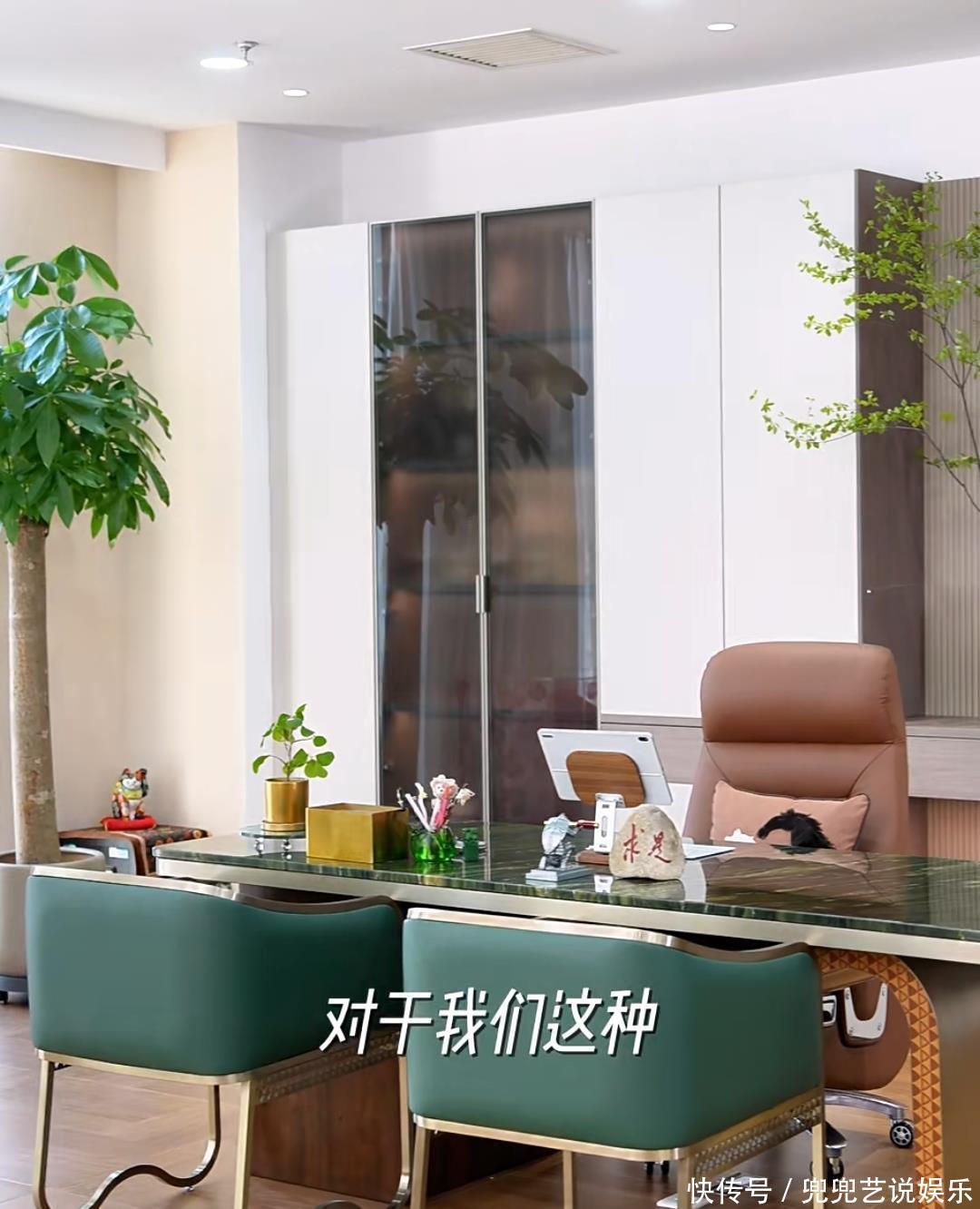 从照片中我们能看出来李思思的办公室还是比较大的,但是从布置来看还是比较传统。简约的老板椅,对面放着两个客椅方便沟通,整体色调偏绿,让人心情愉悦。